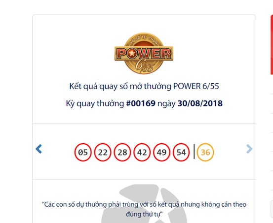 Theo thông tin mới nhất từ Công ty xổ số điện toán Việt Nam (Vietlott), kỳ quay số mở thưởng thứ 170 loại hình xổ số điện toán Power 6/55 sẽ mở thưởng vào ngày hôm nay (1/9/2018).