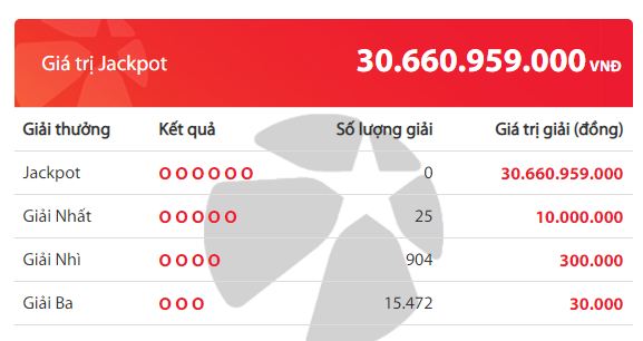 Trước đó, tại kỳ quay số mở thưởng thứ 587 xổ số Mega 6/45 đã không tìm ra chủ nhân của giải Jackpot 1 trị giá 30.660.959.000 đồng.