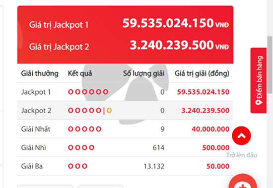 Theo thể lệ Vietlott, do kỳ quay thưởng 177 đã không tìm ra chủ nhân của giải độc đắc nên số tiền 59.535.024.150 đồng sẽ được cộng dồn vào kỳ quay thưởng tiếp theo. Nếu cộng thêm tiền bán vé số, chủ nhân giải Jackpot 1 trong kỳ quay thưởng tới đây có thể nhận được số tiền lên đến 61 tỷ đồng.