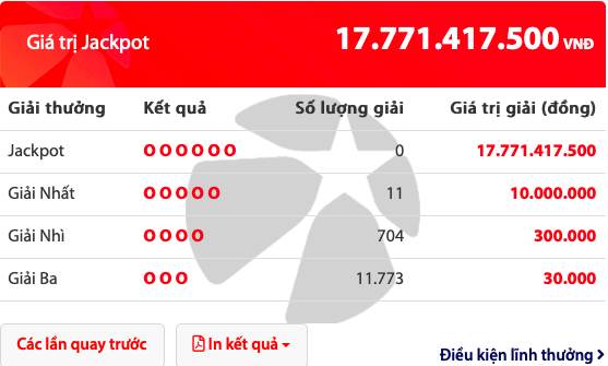 Trước đó, tại kỳ quay thưởng thứ 456 của xổ số Vietlott loại hình Mega 6/45 mở thưởng ngày 21/6 chưa tìm ra chủ nhân may mắn của giải Jackpot trị giá 17.771.417.500 đồng.
