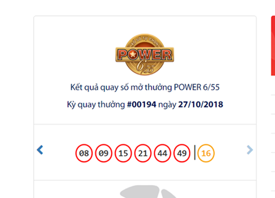 Kết quả xổ số Vietlott loại hình Power 6/55 mở thưởng ngày 27/10. |