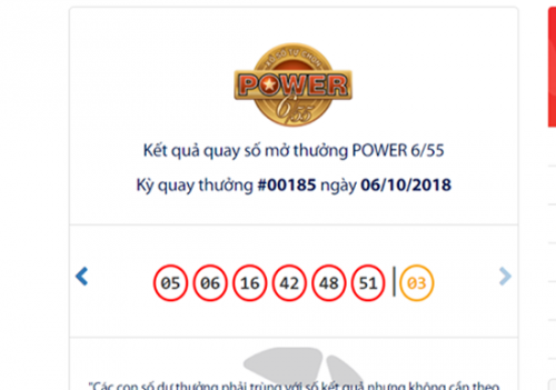 Theo thông tin mới nhất từ Công ty xổ số điện toán Việt Nam (Vietlott), kỳ quay số mở thưởng thứ 185 loại hình xổ số điện toán Power 6/55 sẽ mở thưởng vào ngày hôm nay (9/10/2018).