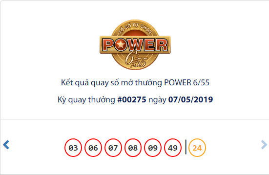 Theo thông tin mới nhất từ Công ty xổ số điện toán Việt Nam (Vietlott), kỳ quay số mở thưởng thứ 276 loại hình xổ số điện toán Power 6/55 sẽ mở thưởng vào ngày hôm nay (9/5/2019).
