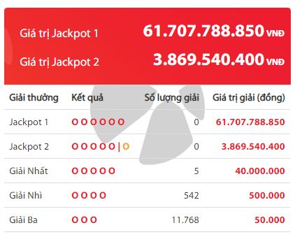 Theo thông tin mới nhất từ Công ty xổ số điện toán Việt Nam (Vietlott), kỳ quay số mở thưởng thứ 396 xổ số Power 6/55 mở thưởng ngày 15/2 đã không tìm ra chủ nhân của giải Jackpot 1 trị giá 61.707.788.850 đồng.
