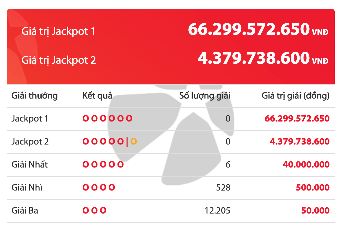 Theo thông tin mới nhất từ Công ty xổ số điện toán Việt Nam (Vietlott), kỳ quay số mở thưởng thứ 398 xổ số Power 6/55 mở thưởng ngày 10/8 đã không tìm ra chủ nhân của giải Jackpot 1 trị giá 66.299.572.650 đồng.