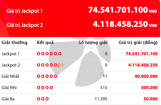 Theo thể lệ Vietlott, do kỳ quay thưởng 336 đã không tìm ra chủ nhân của giải độc đắc nên số tiền hơn 74 đồng sẽ được cộng dồn vào giải Jackpot trong kỳ quay thưởng tiếp theo. Nếu cộng thêm tiền bán vé số, chủ nhân giải Jackpot 1 trong kỳ quay thưởng tới đây có thể nhận được số tiền lên đến 76 tỷ đồng.