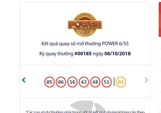 Kết quả xổ số Vietlott loại hình Power 6/55 mở thưởng ngày 6/10. |