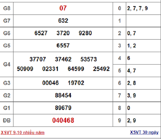 Kết quả xổ số Vũng Tàu hôm nay 9/10/2018. Cập nhật kết quả xổ số Vũng Tàu nhanh và chính xác nhất trên trang Đời sống & Pháp luật.