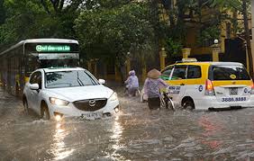 Mặc dù thời tiết đang rất nóng nhưng những cơn mưa rào có thể đột ngột ào xuống bất cứ lúc nào khiến cho việc lưu thông xe gặp nhiều khó khăn vì ngập nước.