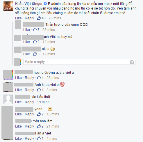 Cách ứng xử của Khắc Việt trước tin đồn ác ý được nhiều người hâm mộ đồng tình và ủng hộ. |