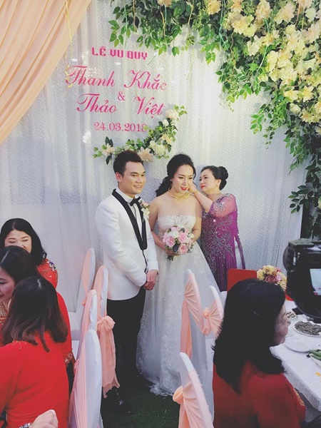 Trước đó, cặp đôi đã làm lễ ăn hỏi vào ngày 11/3. Trong ngày chính thức "rước nàng về dinh", Khắc Việt diện vest trắng bảnh bao, lịch lãm, cười rạng rỡ bên cạnh cô dâu Thanh Thảo xinh đẹp. Sau đám cưới tại quê nhà Yên Bái, Khắc Việt và bà xã sẽ có thêm 1 buổi tiệc báo hỷ, tiếp đãi người thân và bạn bè vào ngày 1/4 ở Hà Nội.