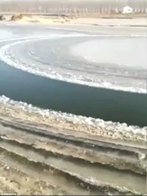 Hiện tượng thiên nhiên kì lạ này xuất hiện ở giữa sông Liao lạnh giá ở tỉnh Liêu Ninh, vùng đông bắc Trung Quốc.