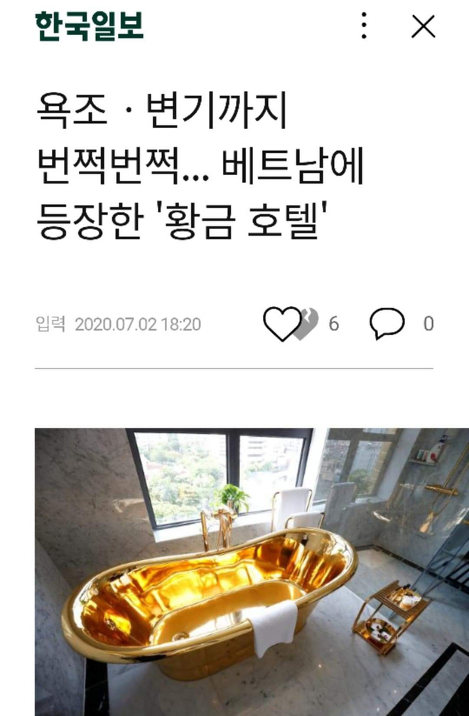 Khách sạn dát vàng ở Việt Nam lên báo Hàn. |