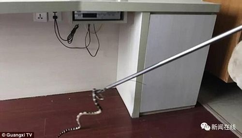 Con rắn này sau đó đã bị bắt và đưa đến trung tâm bảo vệ động vật hoang dã ở Nam Ninh.