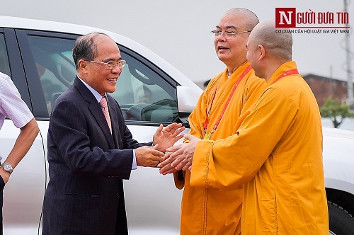 Thủ tướng Nguyễn Xuân Phúc tới tham dự buổi khai mạc Đại lễ Phật đản Liên Hợp Quốc tại chùa Tam Chúc, Hà Nam. |