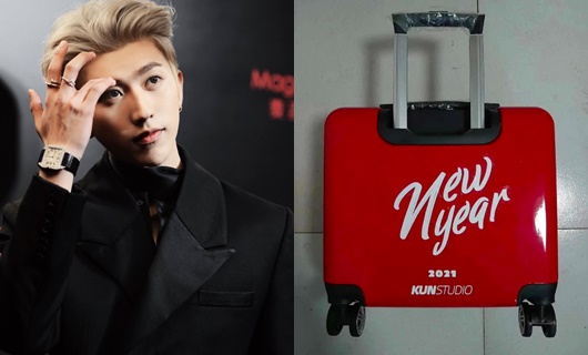 Thái Từ Khôn có cách tặng quà Tết độc đáo khi cho tất cả vào một chiếc vali màu đỏ có in dòng chữ KunStudio để đánh dấu thương hiệu cá nhân. |