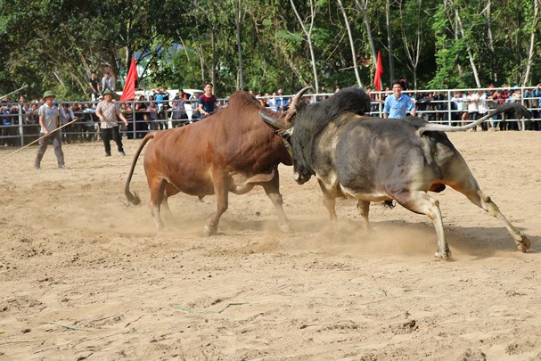 Sau phần thi trâu bò khỏe đẹp là hội thi chọi trâu, bò truyền thống. Đây cũng chính là màn hấp dẫn nhất thu hút đông đảo người theo dõi. Trâu bò được chủ dẫn vào sân đấu trong tiếng reo hò vang dậy của hàng nghìn khán giả.