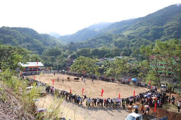 Lễ hội chọi trâu, bò là nét truyền thống của người dân đồng bào Mông Nghệ An. |