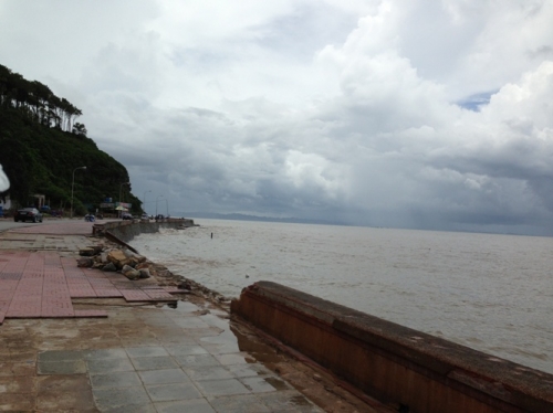Bãi biển Đồ Sơn vắng lặng ngày mưa bão |