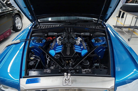 | Khối động cơ V12 6,75 lít được lắp bên trong mẫu Phantom Waterspeed với số lượng sản xuất hạn chế. Động cơ được sơn màu xanh dương cùng màu với xe. Rolls-Royce chỉ sản xuất 35 chiếc xe này. |