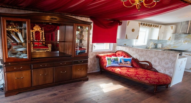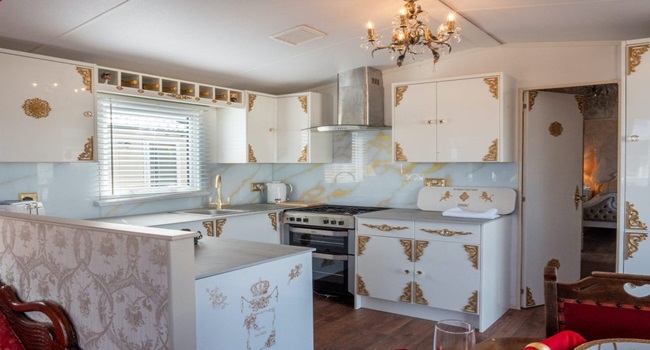 "Cung điện" có tên gọi là Royal Caravan (tạm dịch: nhà di động Hoàng gia), được thiết kế bởi khu nghỉ dưỡng Parkdean ở Cayton Bay, Anh. Tại đây, khách nghỉ được trải nghiệm sống như hoàng gia Anh với ngai vàng bọc nhung đỏ, toilet dát vàng...