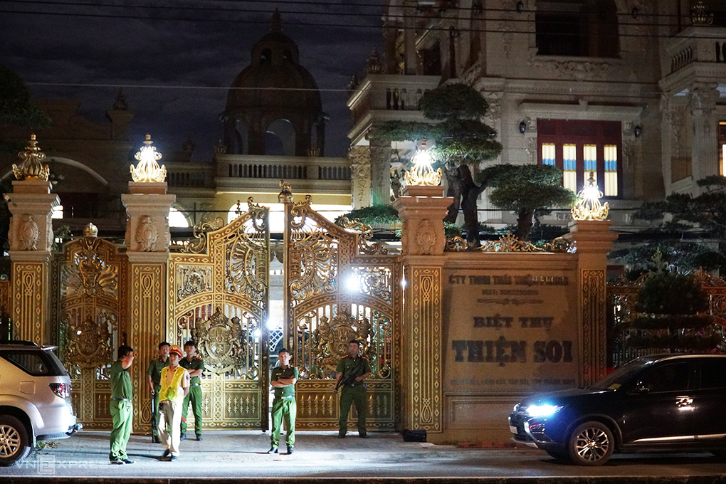 Đến 23h ngày 1/12, lực lượng chức năng vẫn đang tiếp tục khám xét căn biệt thự dát vàng của đại gia Lê Thái Thiện (biệt danh Thiện “Soi”, SN 1965, trú tại thị xã Phú Mỹ, tỉnh Bà Rịa Vũng Tàu).
