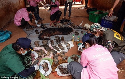 Qua khám xét một ngôi đền Hổ, cảnh sát Thái Lan đã phát hiện 40 xác hổ con chết khô và tội ác man rợ xảy ra tại đây.
