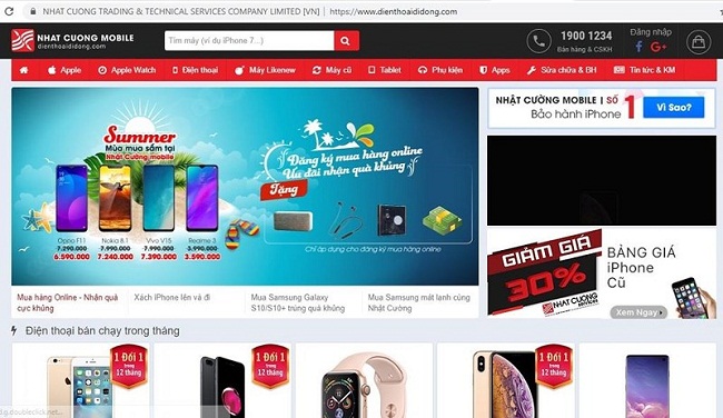 Website bán hàng của Nhật Cường mobile. |
