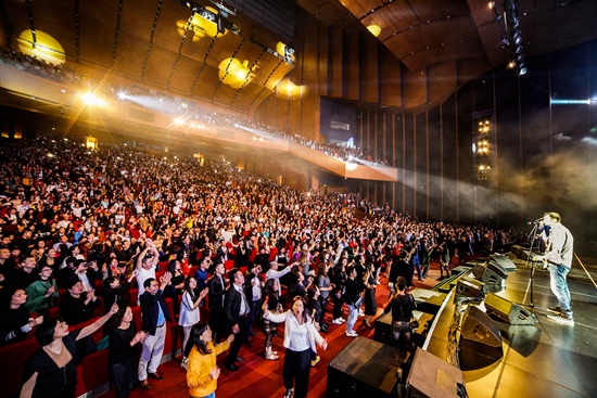 Gần 4000 khán giả phủ kín khán phòng tại đêm nhạc Boney M và Joy tại Hà Nội chấp nhận đứng xem thần tượng biểu diễn ngay từ những ca khúc đầu tiên.