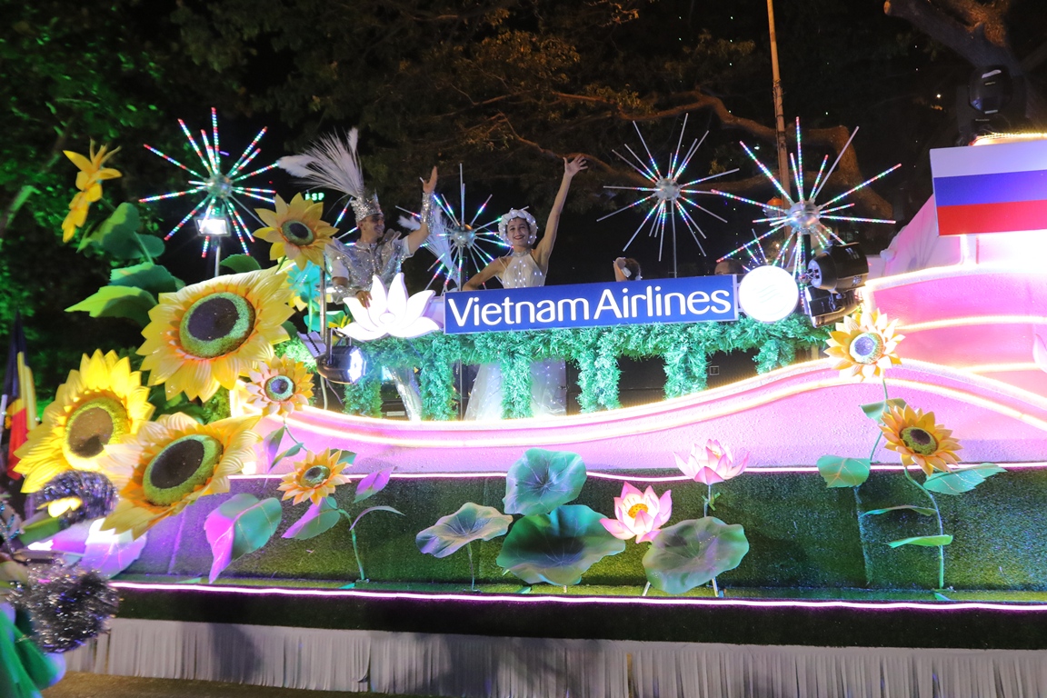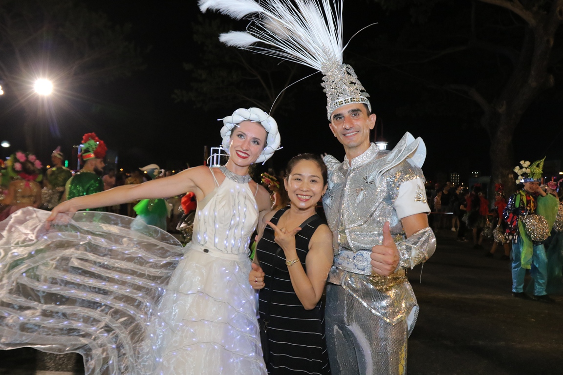 Những lớp khán giả đường phố đủ mọi lứa tuổi lắc lư theo từng nhịp điệu, hát vang những câu hát kinh điển “Mai ya hee, mai ya hoo, mai ya ho, mai ya haha” khiến trái tim họ vui vẻ ngập tràn. 4 xe diễu hành được trang trí đèn hoa rực rỡ theo chủ đề các loài hoa đặc trưng cho 8 quốc gia tham dự DIFF 2019 thắp sáng cả không gian “phố đi bộ tối Chủ Nhật” Bạch Đằng.