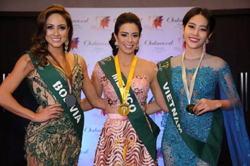 | Á hậu 3 - Hoa hậu Lửa của cuộc thi Miss Earth 2016 vừa bị truất ngôi (trái ngoài cùng). |