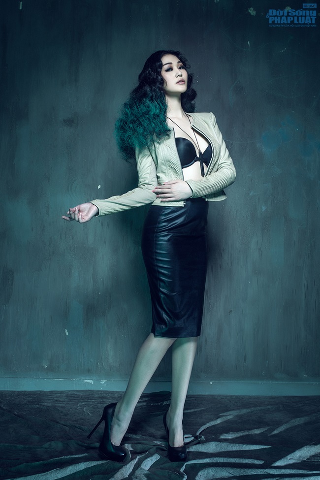 | Diện nội y đen nóng bỏng và tạo hình lạnh lùng, cá tính Khánh My đã hoàn toàn "lột xác" với hình ảnh trước đây. |