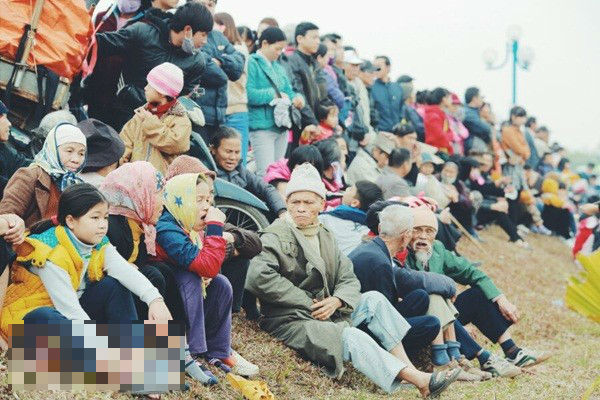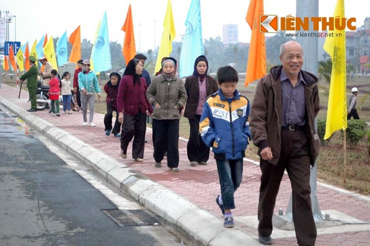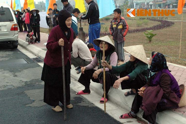 Các cụ bà chống gậy đến xem lễ khánh thành cầu Nhật Tân. |