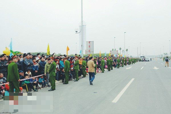 Người dân đứng theo dõi rất đông từ 2 bên đường. |