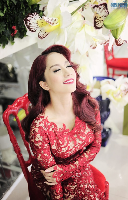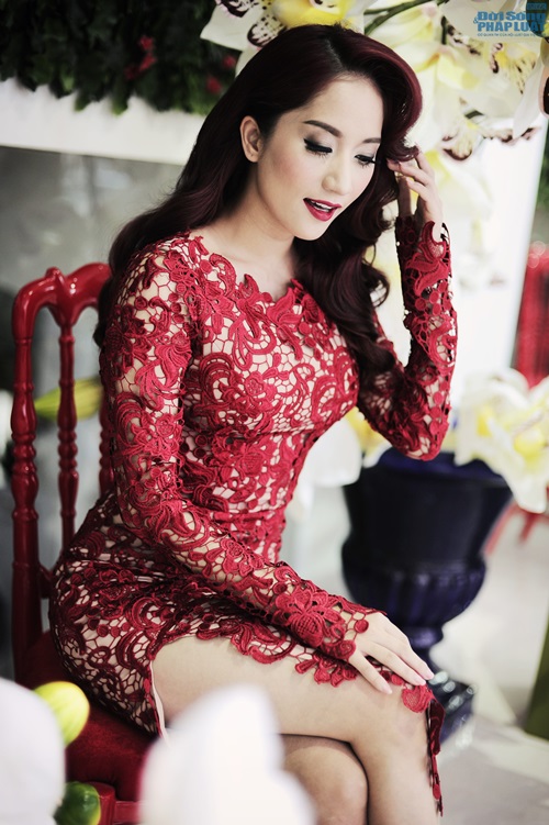 | Trong chiếc váy ren đỏ tinh tế ôm sát cơ thể, nữ kiện tướng khiến cả ekip thích thú khi cô tạo dáng quá chuyên nghiệp, cách trang điểm sang trọng với kiểu tóc cổ điển càng tôn lên vẻ đẹp quý phái, kiêu kì của Khánh Thi. |
