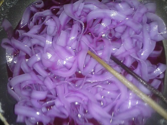 Bắp cải tím là nguyên liệu thiên nhiên tạo ra màu tím cho món mứt dừa thơm ngon |