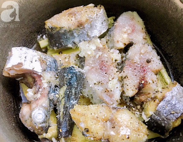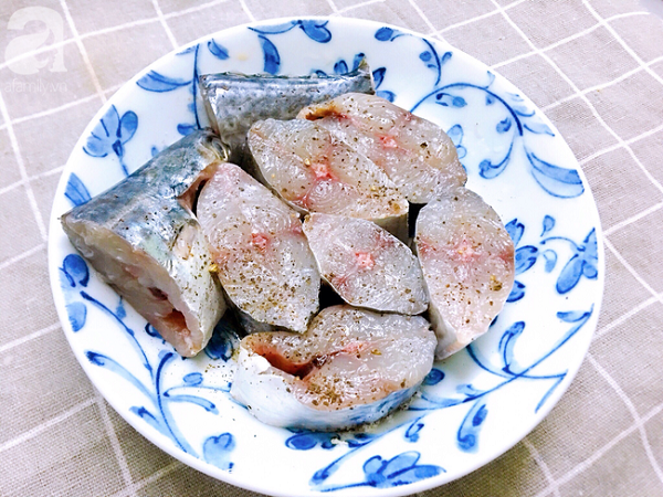 - Bước 1: Cá làm sạch thái khúc vừa ăn, ướp cá với ít muối và tiêu.