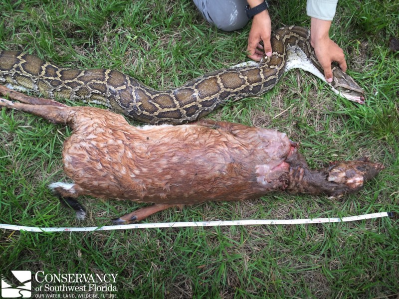 Các chuyên viên tại Khu bảo tồn thiên nhiên Tây Nam Florida đã công bố một số nghiên cứu thú vị - trong số đó có tài liệu về một con trăn Miến Điện nặng 14,29 kg nuốt chửng một con hươu đuôi trắng nặng tới 15,88 kilogram.