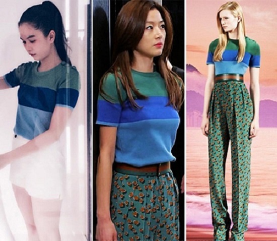Lần này cô còn đạo luôn cả mẫu áo gây sốt của Gucci được Jeon Ju Hyun mặc trong bộ phim “Vì sao đưa anh tới” . Ngọc Trinh gần như không thay đổi nhiều ngoài một chút về màu sắc và chất liệu của thiết kế gây bão này.