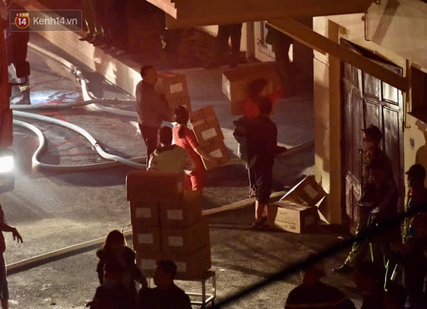 Thùng hàng, vật dụng dễ cháy và nhiều đồ giá trị được mọi người di dời đến nơi an toàn trong đêm. Ảnh: Phương Thảo/ Kênh 14 |