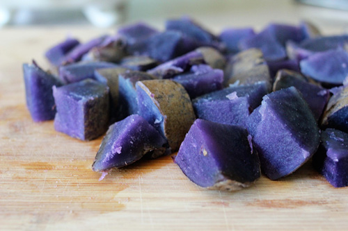 Màu tím của khoai tây sẽ được giữ bền nhất khi chúng được hấp hoặc nướng. Khoai tây nướng cả vỏ hay luộc tốt cho việc ăn kiêng. Các nhà khoa học cho biết mặc dù khoai tây cung cấp nhiều calo nhưng ăn khoai tây tím lại không gây béo phì.