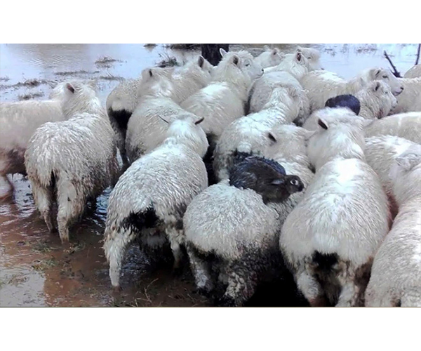 Những con thỏ hoang dã màu đen không muốn "nhúng chân xuống nước" nên lội suối đã tìm cách leo lên lưng cừu để vào bờ. Ảnh: Telegraph. |