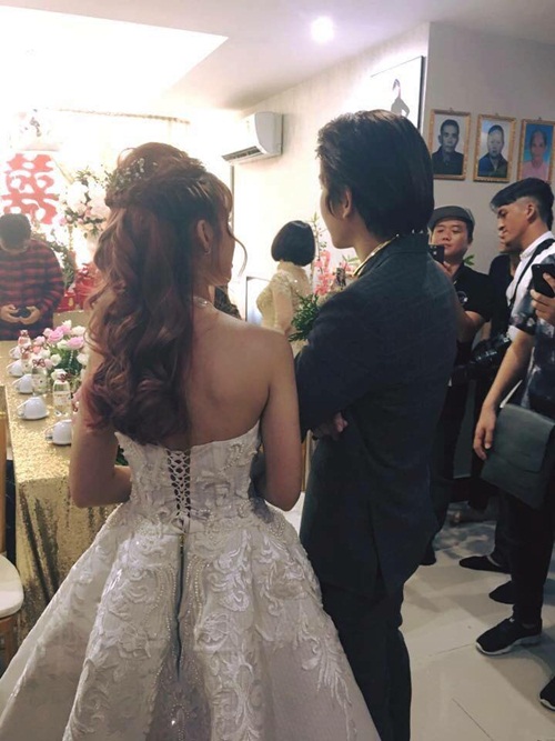 Theo đó, Khởi My và Kelvin Khánh đã tổ chức cưới bí mật, chỉ có người thân và một số bạn bè chứng kiến. Đám cưới của Khởi My diễn ra ở nhà riêng tại TP HCM. Trong hôn lễ, cô dâu mặc váy trắng, cổ yếm gợi cảm. Dàn dâu phụ diện áo dài cách tân sang trọng.