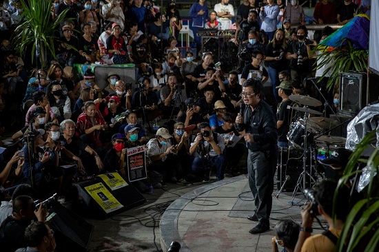 Anon Nampa, một nhà lãnh đạo cấp cao của cuộc biểu tình, gọi ngân sách hoàng gia là 'quá mức' và nói rằng nó đã 'tăng lên một cách không cần thiết. Ảnh: Getty. |