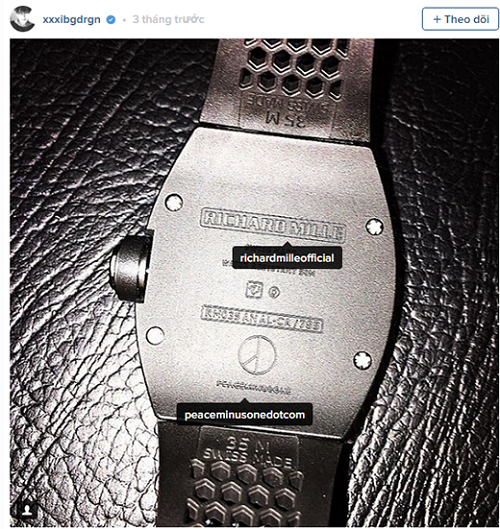 G-Dragon sở hữu chiếc đồng hồ đắt tiền hiệu Richard Mille có cả biểu tượng cá nhân riêng trên đó.