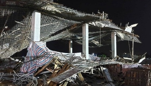 Hiện trường vụ sập giàn giáo khiến 8 người thương vong ở Hải Phòng. Ảnh: Tiền Phong |