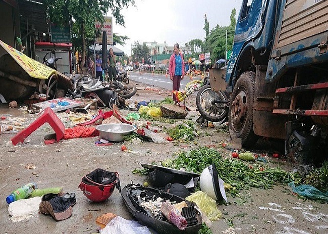 Tiếp đó, xe này chạy tông vào xe tải BKS 47-125.70 (tỉnh Đắk Lắk) lưu thông hướng cùng chiều, khiến xe này mất lái, lùa chín xe mô tô, làm 3 nạn nhân chết tại chỗ.