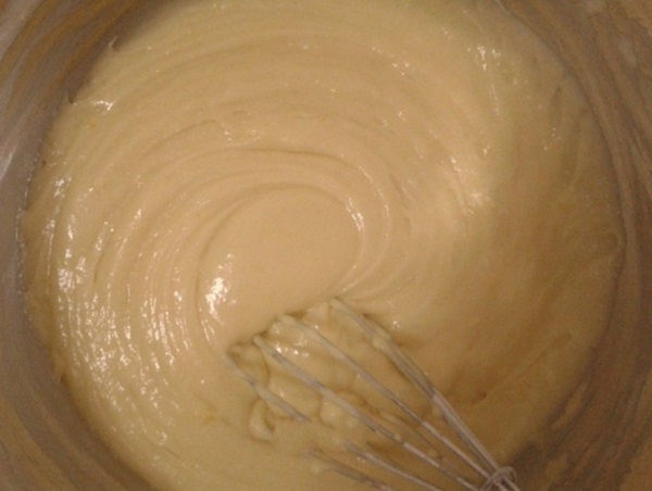 - Bước 3: Bột sau khi lấy từ tủ lạnh ra khá đặc, thêm sữa tươi vào trộn chung.
