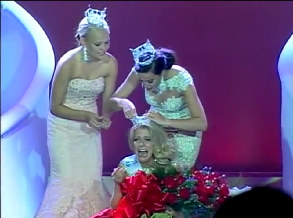 | Audra Casterline ngồi sụp xuống khi đăng quang. |