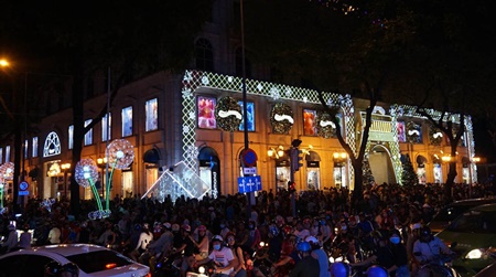 | Tại TP. HCM, người dân nô nức đổ về phố đi bộ Nguyễn Huệ đợi khoảnh khắc New Year's Countdown Lights 2018. Ảnh: Khám phá |
